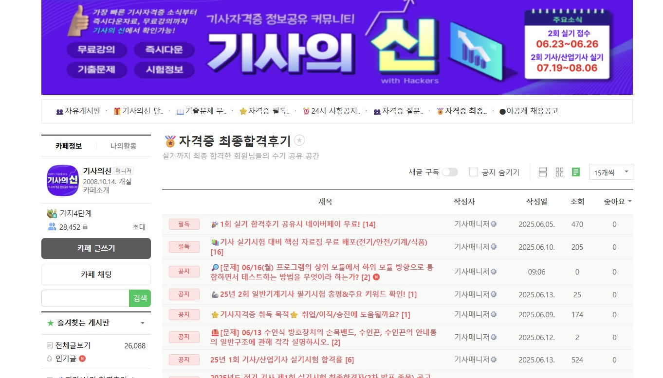 기사의 신 카페 후기 게시판에도 후기를 작성해야 해요.